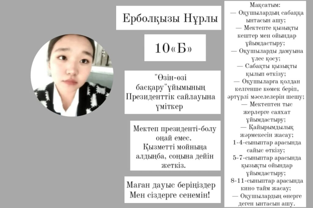 🛑#10 үміткер — 10 «Б»- сынып оқушысы Ерболқызы Нұрлы