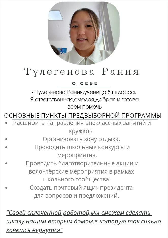🛑#6 үміткер — 8 «Г»- сынып оқушысы Тулегенова Рания