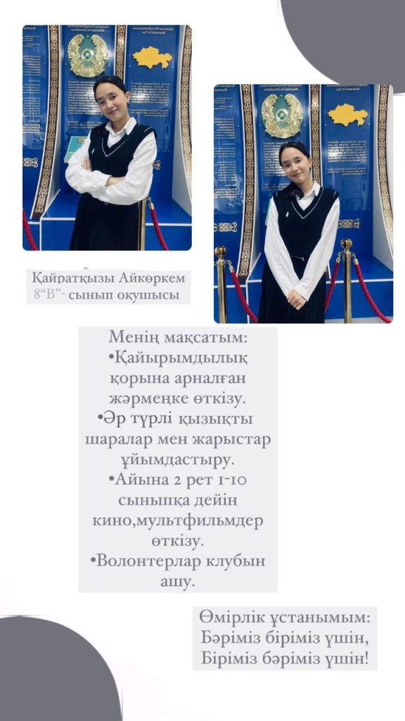 🛑#5 үміткер — 8 «В»- сынып оқушысы Қайратқызы Айкөркем