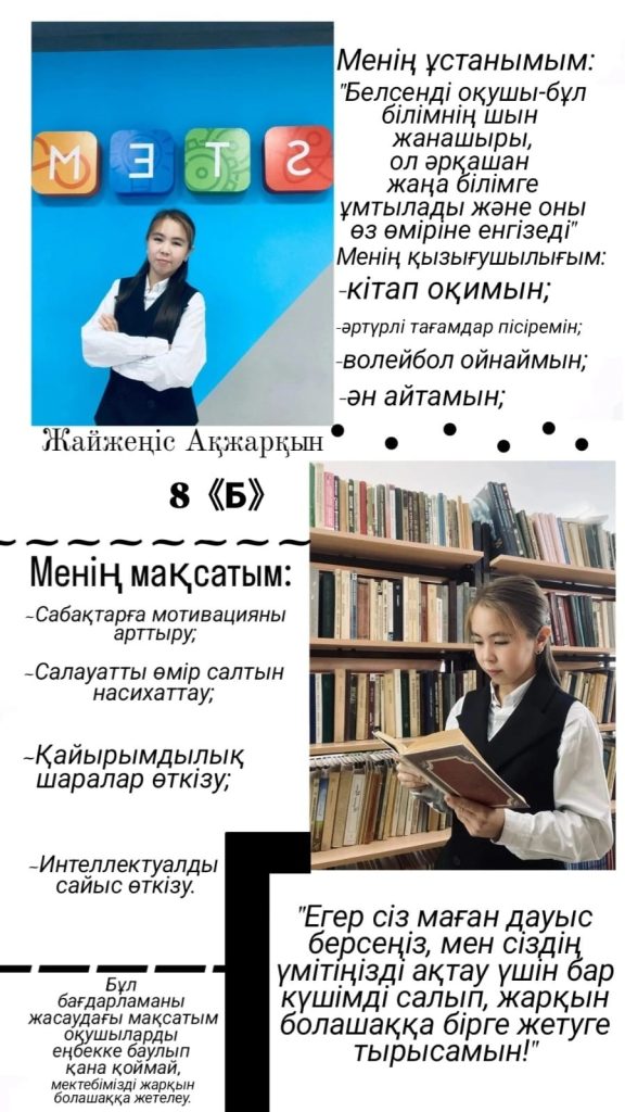 🛑#3 үміткер — 8 «Б»- сынып оқушысы Жайжеңіс Ақжарқын